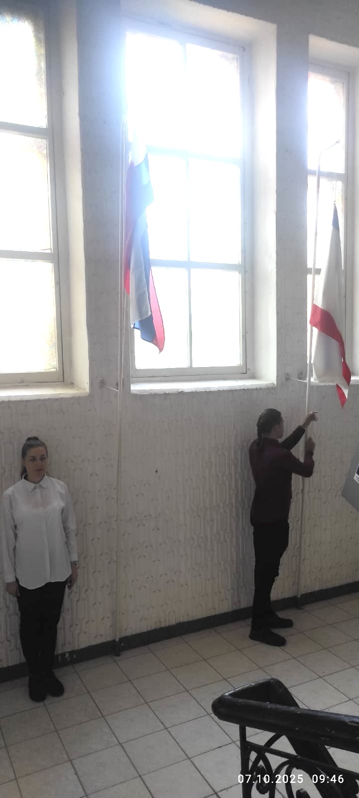 🎉 7 октября 2025 года в Юго-Восточной академии (филиал) ФГАОУ ВО «КФУ им. В.И. Вернадского» прошла торжественная линейка, посвященная поднятию Государственных флагов России и Республики Крым. Это событие стало символом начала новой учебной недели и было наполнено особым смыслом. » image-08-10-25-11-13-2