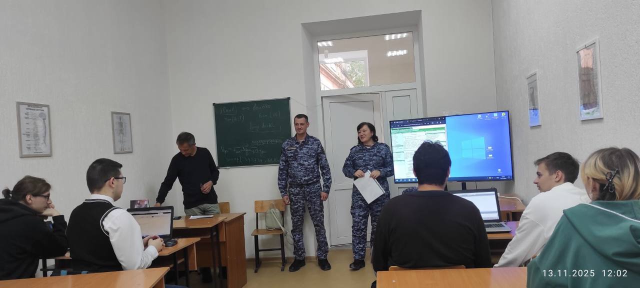 13 ноября 2025 года в Юго-Восточной академии (филиал) «КФУ им. В.И. Вернадского» состоялась профориентационная беседа с офицерами вневедомственной охраны Феодосии. Во встрече со студентами приняли участие: