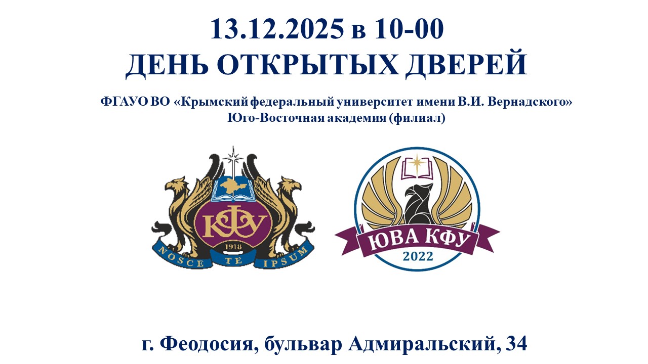 Приглашаем абитуриентов и родителей на День открытых дверей в Юго-Восточную академию (филиал) ФГАОУ ВО «Крымский федеральный университет имени В.И. Вернадского»!