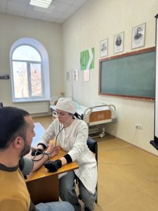 Это был не просто экзамен, а максимально приближенная к реальности практика. В условиях импровизированного амбулаторного приема каждый конкурсант демонстрировал безупречное владение навыками функционального обследования пациента: определение параметров внешнего дыхания, сатурации крови, артериального давления и пульса.